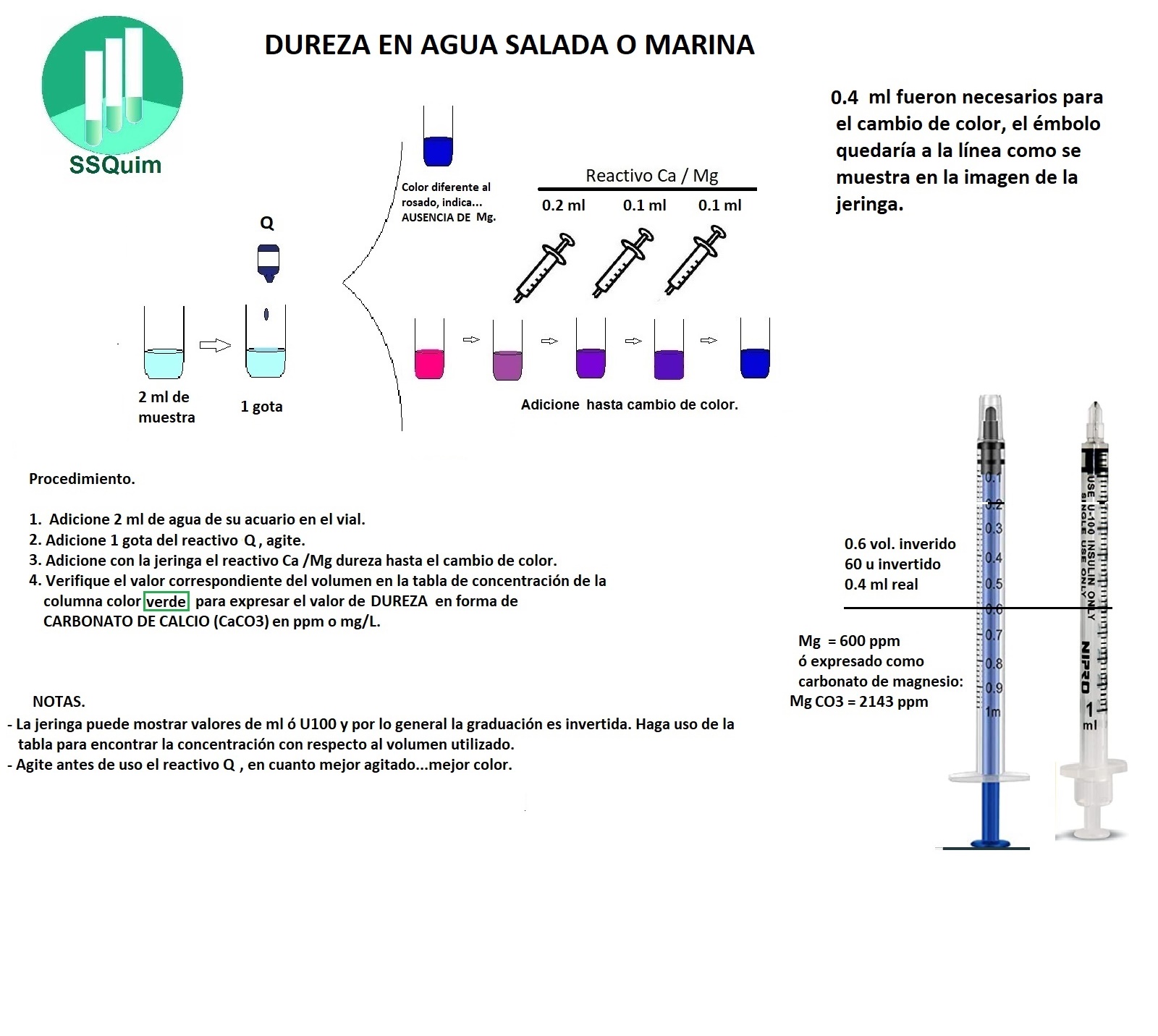 2 mililitros de su acuario marino o 10 ml de agua dulce