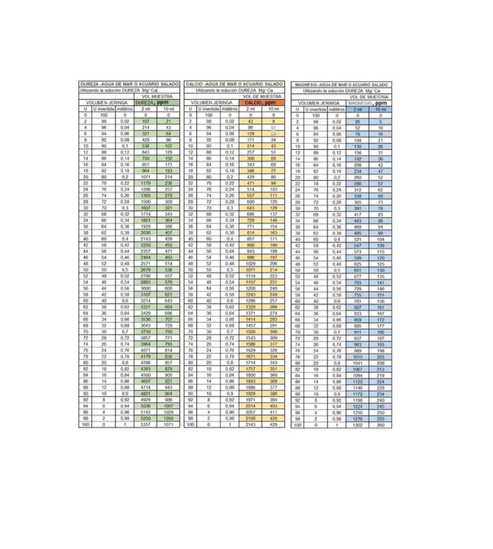 CALCIO hasta 200 test o DUREZA 400 test o MAGNESIO 120 test ( aun tendrá reactivo para 100 de CALCIO o 150 de DUREZA).